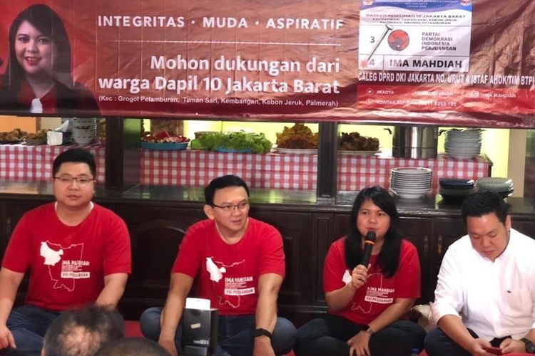 Dia menyampaikan hal itu saat acara blusukan perdana. Pada kesempatan itu hadir pula dua caleg PDI Perjuangan, yakni Ima Mahdiah dan Charles Honoris. BTP mengatakan keduanya dapat dipilih agar bisa mengawal anggaran di pemerintahan.